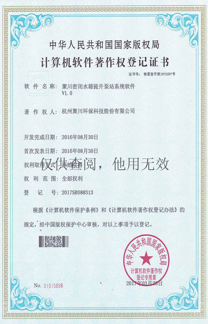 : 聚川负压收集排污管理控制系统软件证书